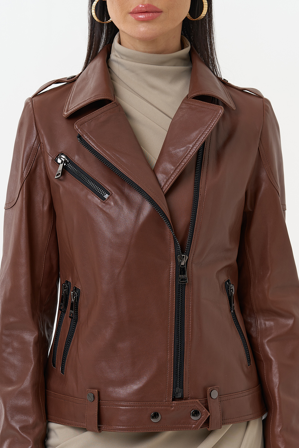 Куртка из натуральной кожи насыщенного коричневого цвета