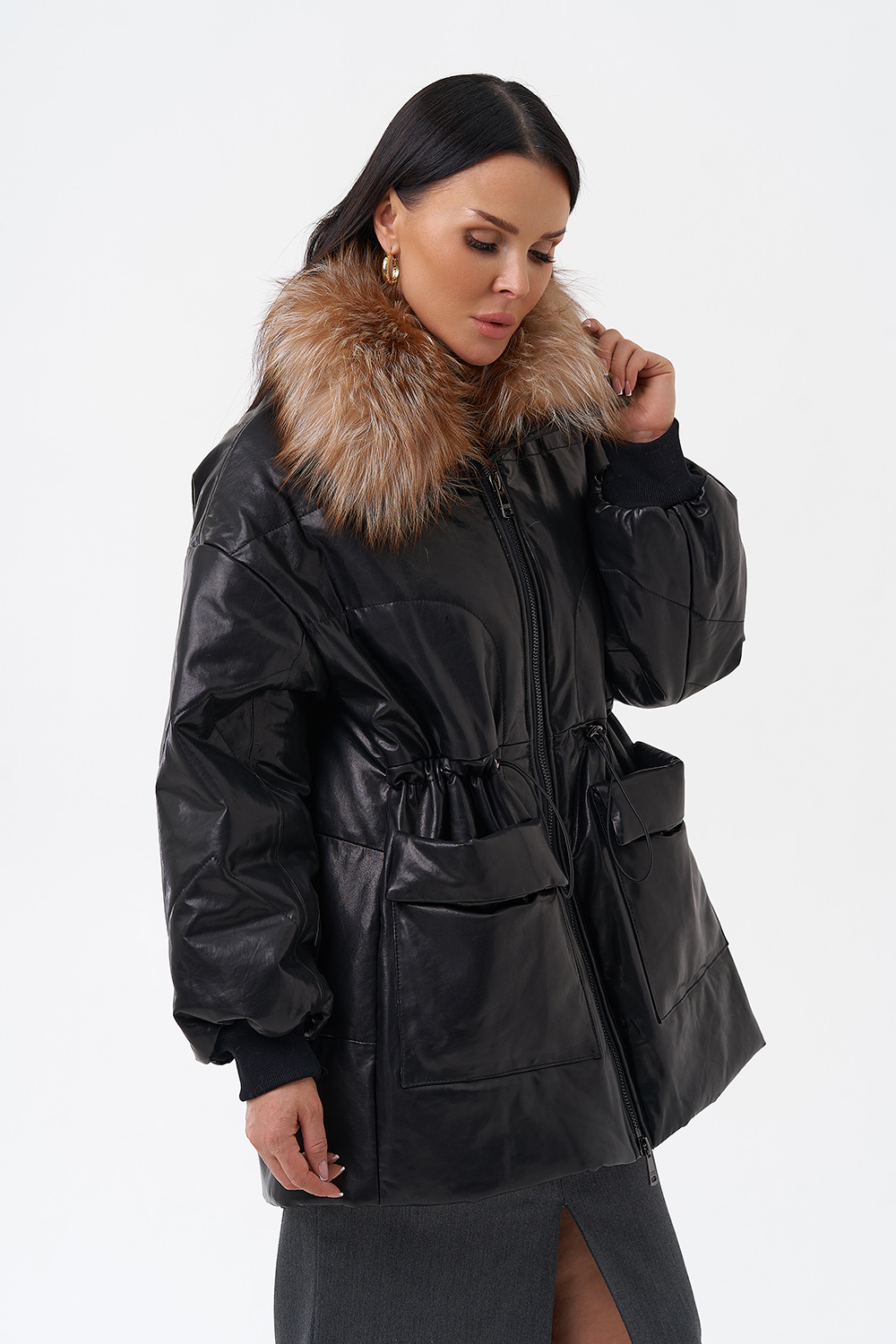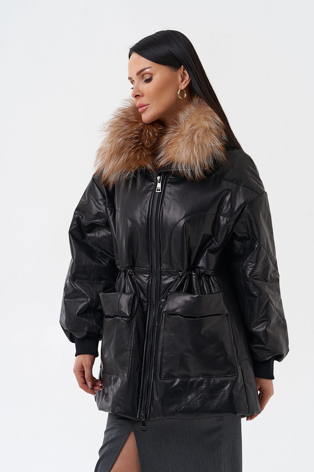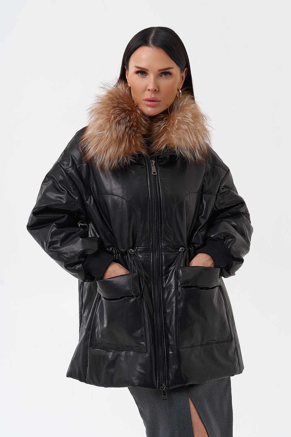 Утепленная кожаная куртка с песцом