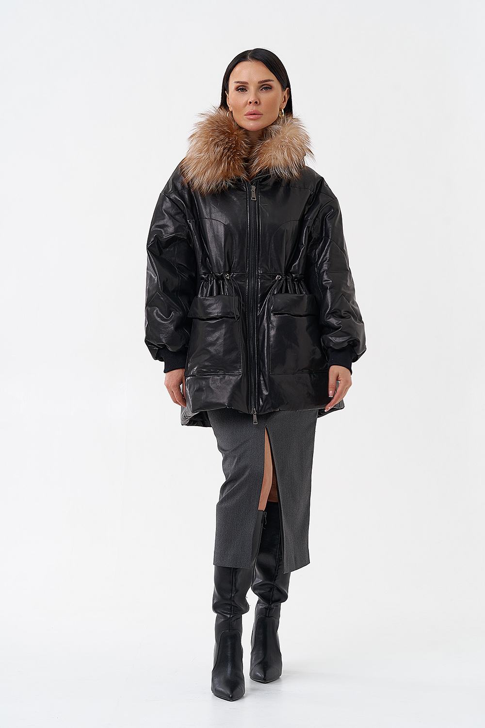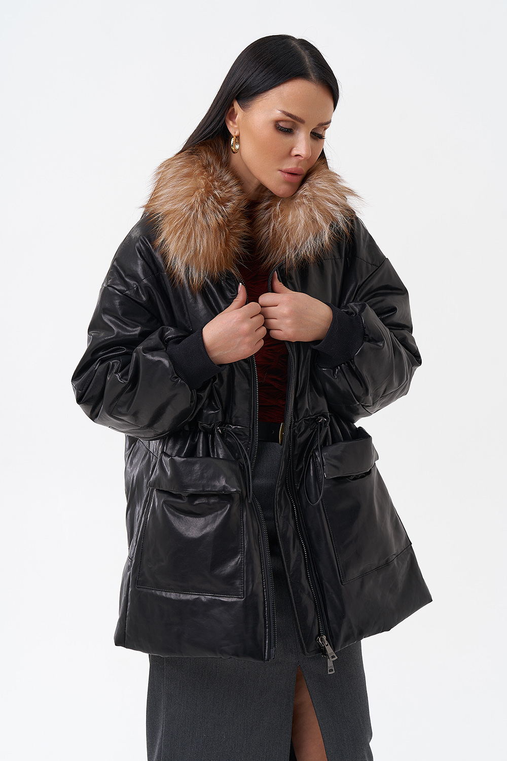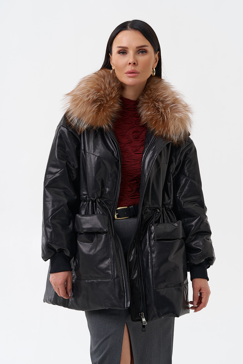 Утепленная кожаная куртка с песцом