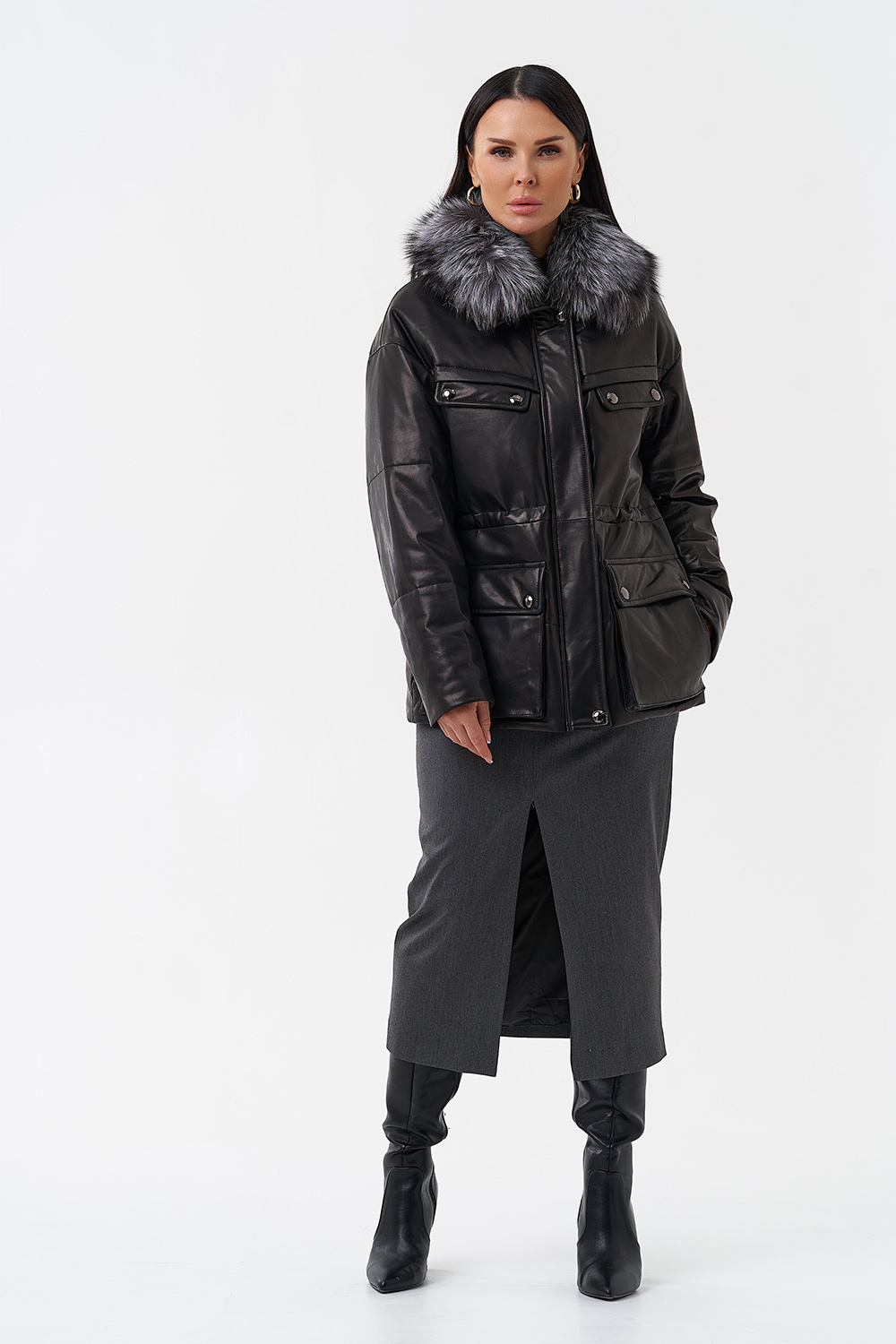 Тип ворота - отложной, отделка чернобурка