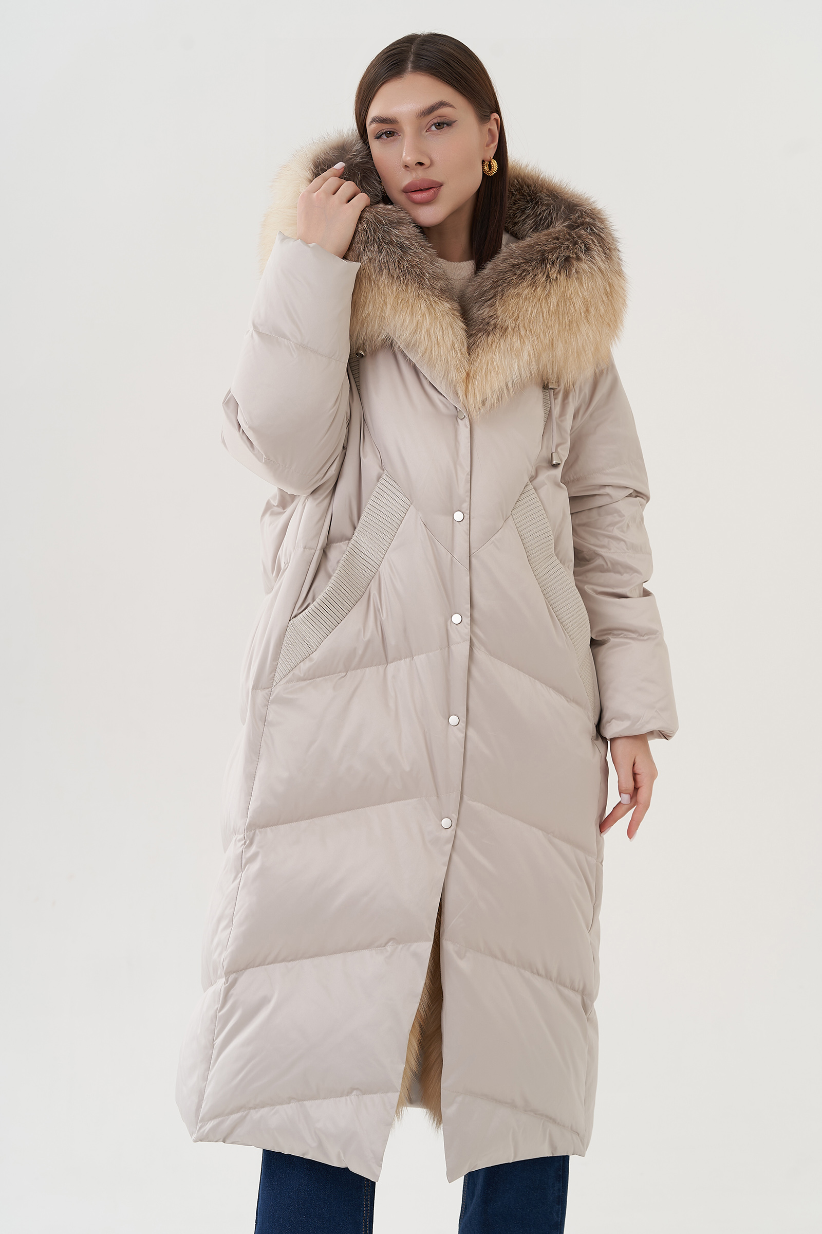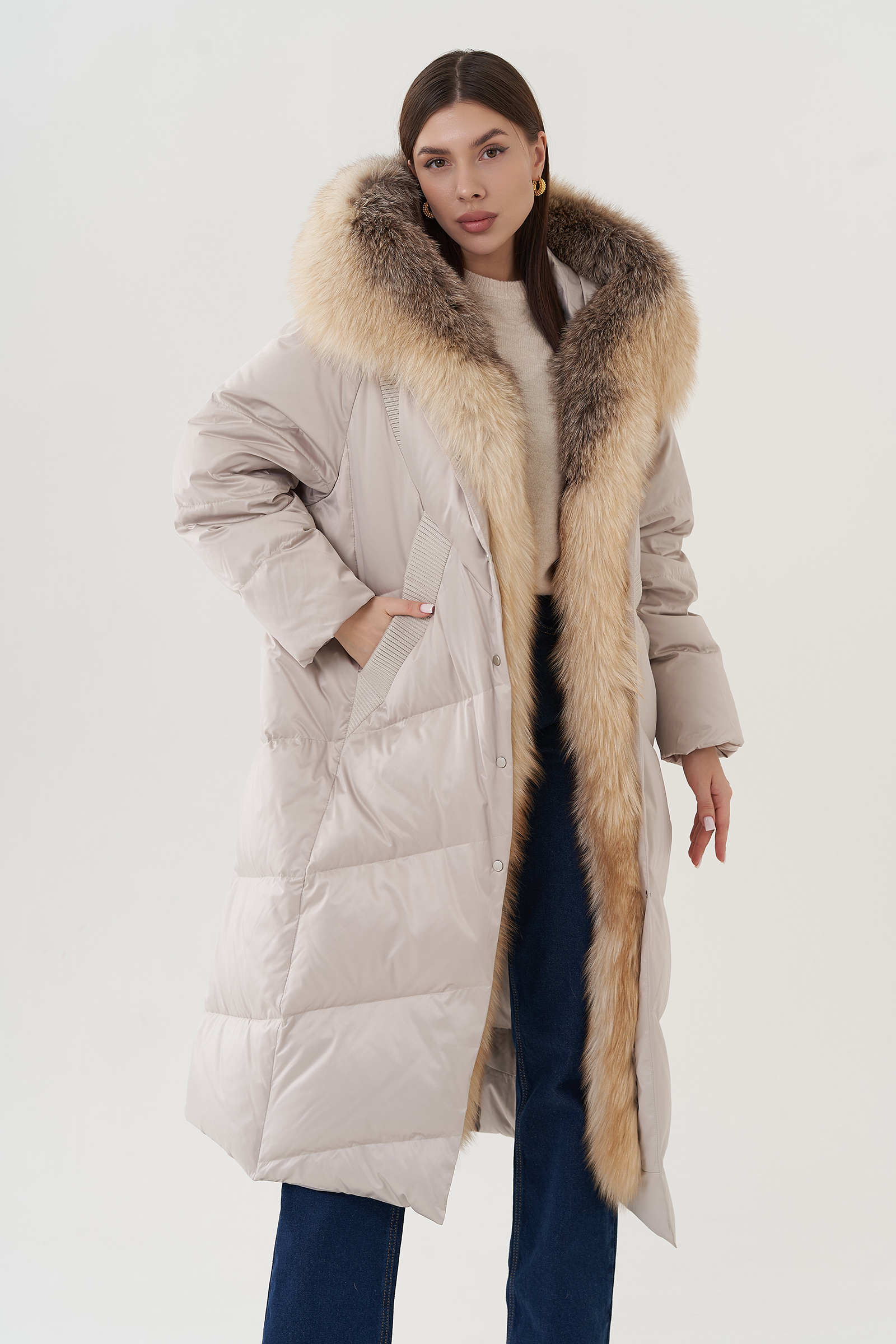 Крой воротника - капюшон, отделка лиса