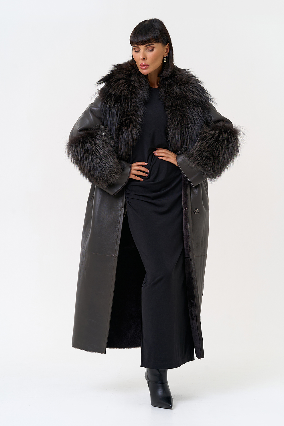 Отделка рукава - мех лисы, цвет серый