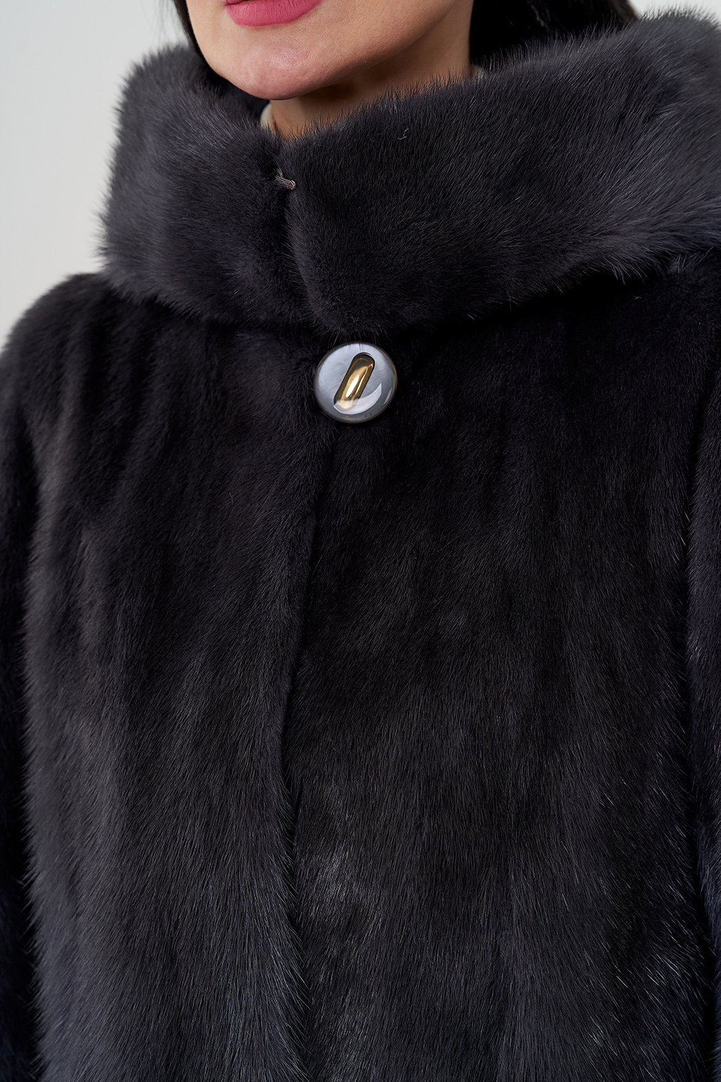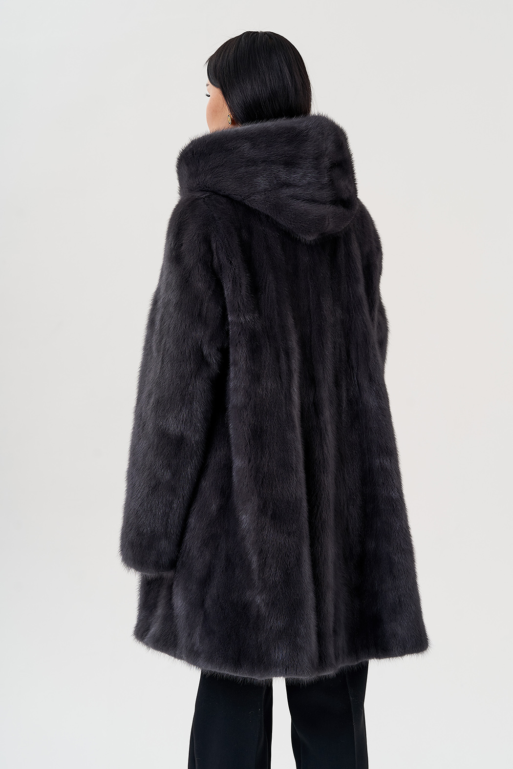 Шуба из меха норки в цвете графит. Покрой балетка
